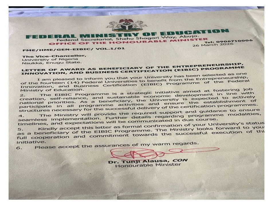 The Federal Government on Friday 28th March, 2026 introduced and launched the Entrepreneurship, Innovation and Business Incubation Certification (EIBIC) programme, a game-changer for Nigeria’s tertiary education system. This compulsory programme will equip students in selected Universities with practical business skills, innovation strategies, and startup incubation, earning them an additional entrepreneurship certificate alongside their academic degree. The Director of CEDR UNN, Prof. A.B.C Ezeibe participated in this epoch making event and as well collected UNN Certificate on behalf of the vice chancellor Prof. Simon Uchenna Ortuanya. Click on the pictures below to view the highlights.